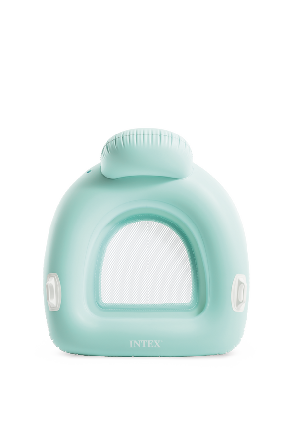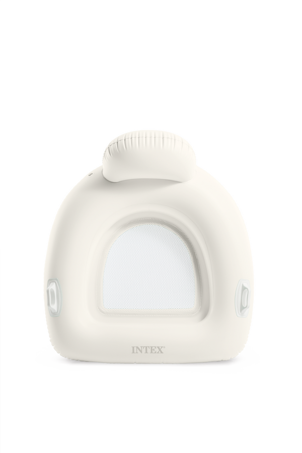 Nafukovací křeslo s opěradlem na záda, ruce i hlavu pro komfortní sezení. Sedací část je tvořena síťkou pro příjemné ochlazení. Křeslo je vybaveno dvěma pevnými madly.