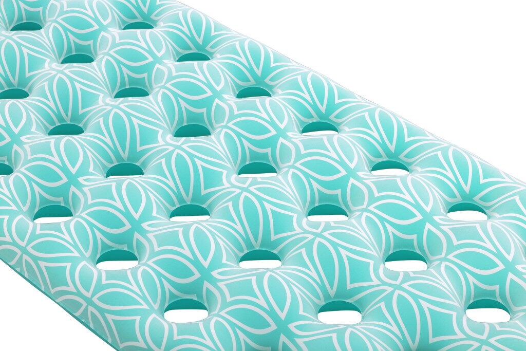 Nafukovací lehátko o rozměrech 1,98 m x 74 cm. Lehátko je vyrobeno z kvalitního vinylu. Maximální váhový limit je 100 kg. Vrchní část lehátka z příjemného materiálu. Lehátko má dvě vzduchové komory a opravná záplata je součástí balení.