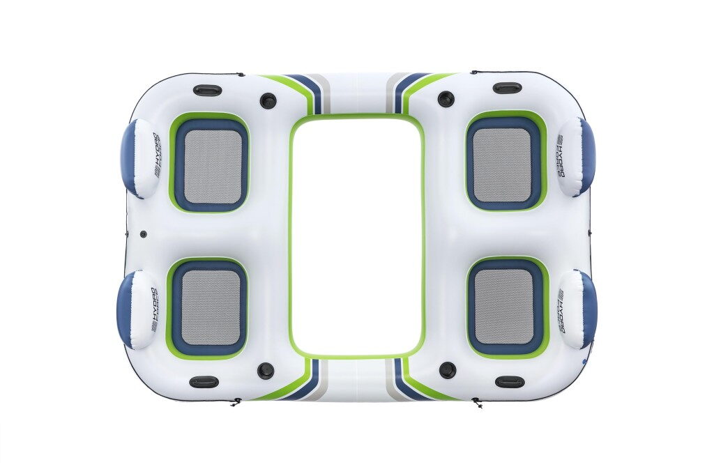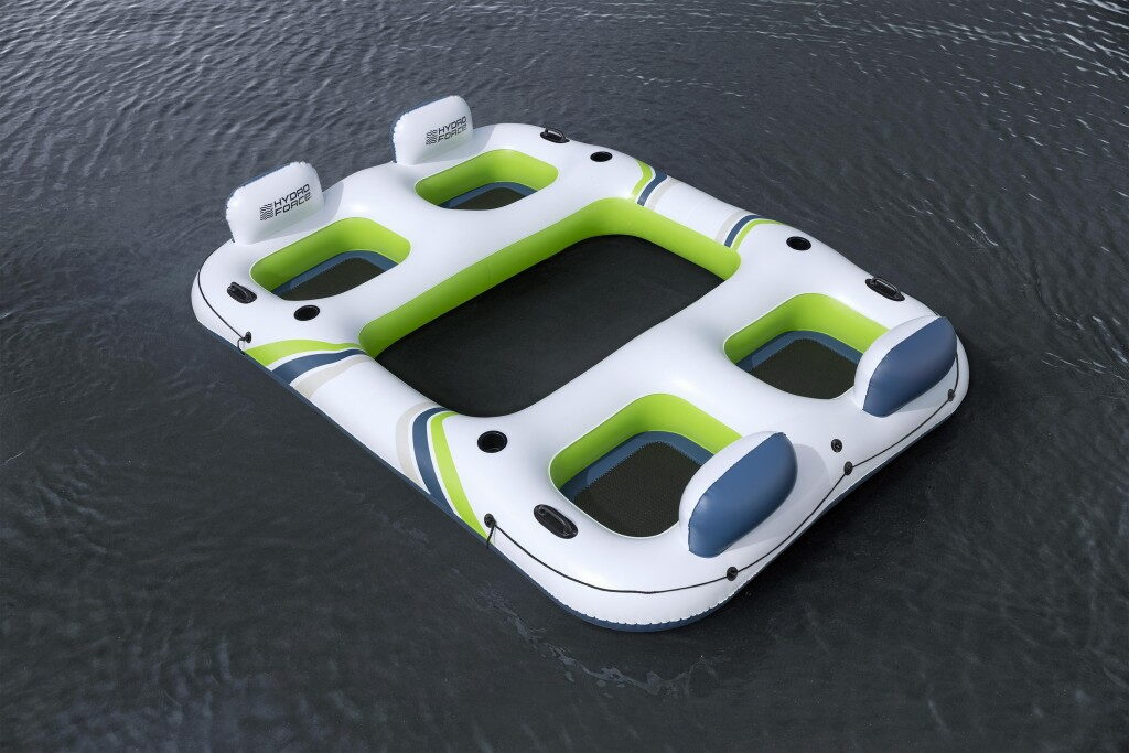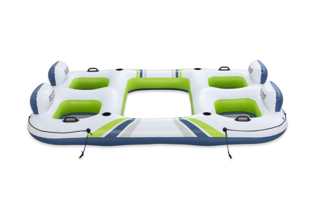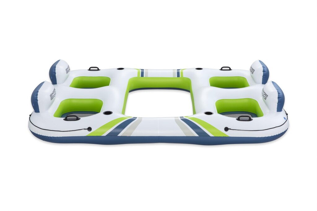 Nafukovací ostrov je z materiálu Inflata-Shield™, který je odolný proti propíchnutí a má zvýšenou pevnost, která zajišťuje lepší stabilitu a zadržování vzduchu. 2 spojky Clasp 'N Go™ umožňují spojit více ostrovů dohromady nebo připojit ostrov k jiným plovákům. Prémiová konstrukce se 4 opěradly. Ostrov má sedátka ze síťoviny, které příjemně chladí v horkých dnech na vodě, ve středu ostrova je otevřený prostor pro ponoření nohou do vody a má 4 držáky pro nápoje. Částečná madla usnadňují držení a vstupování na ostrov. Odolná madla pro přenášení. Rychloupínací ventily. Maximální nosnost je 400 kg.