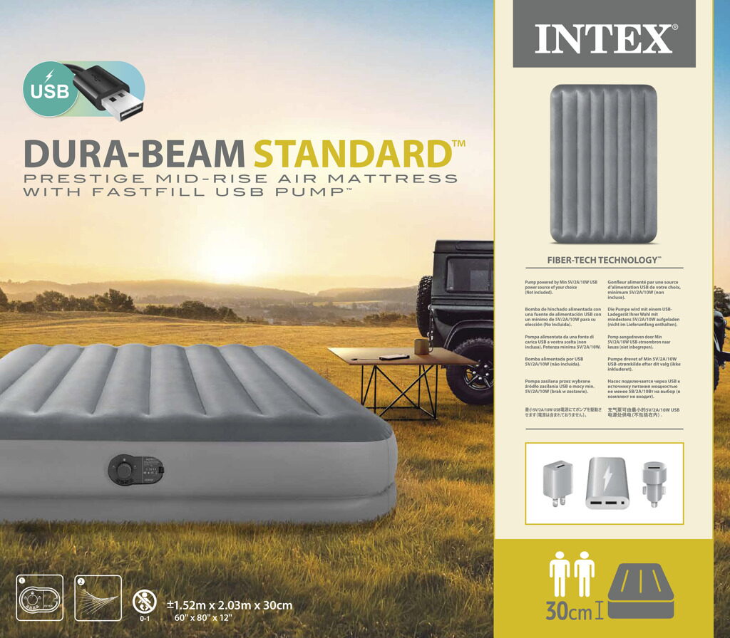 Nafukovací postel o velikosti 152 cm x 203 cm x 30 cm. Maximální nosnost 272 kg. Čas nafouknutí je 5,5 minuty. Snadné nafukování, vyfukování a uskladnění. Zabudovaná elektrická pumpa.