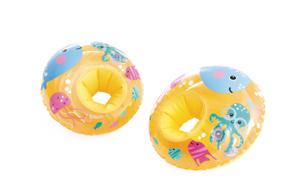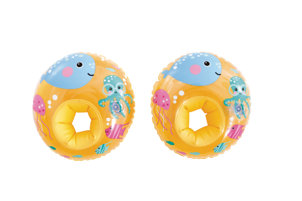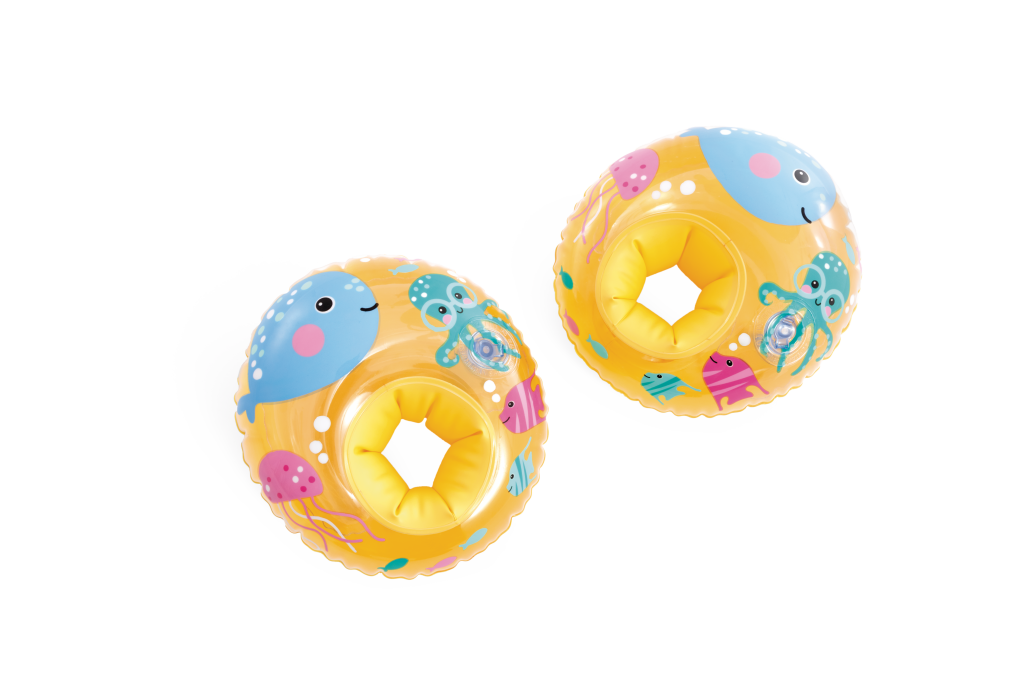 Veselé nafukovací oválné rukávky ve žluté barvě s obrázky mořských kamarádů. Jsou určeny pro děti od 3 do 6 let s váhovým limitem 19–30 kg. Každý rukávek je tvořen dvěma vzduchovými komorami.