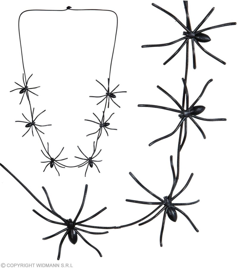 Černý náhrdelník s pavouky. Délka v obvodu 60 cm.