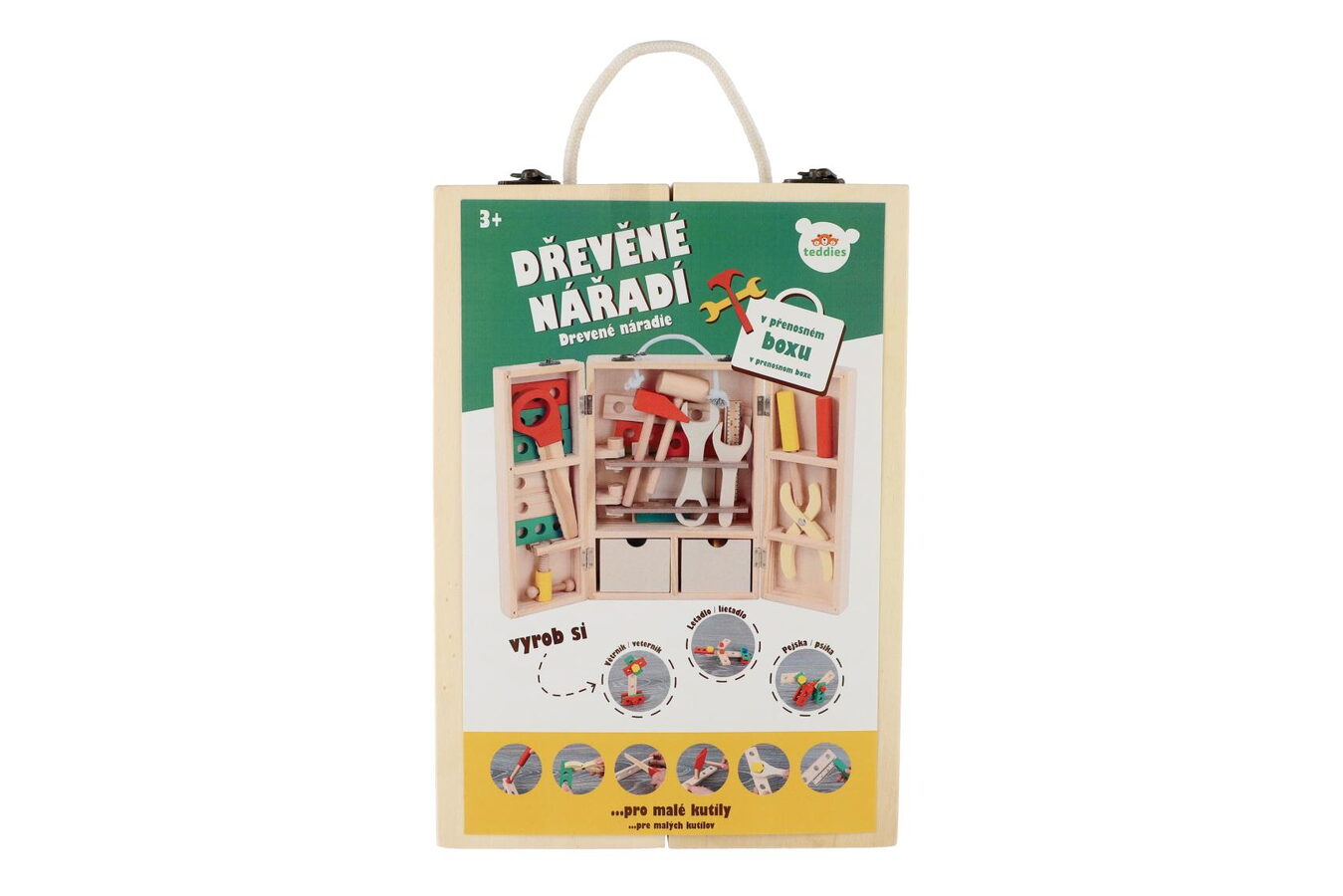 Teddies Nářadí dřevo s doplňky v dřevěném kufříku 21x30x8cm
