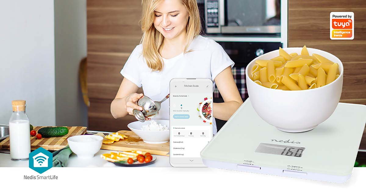 Vážení jídel a ingrediencí podporuje zdravější stravovací návyky a pomáhá při hubnutí a zlepšování. Lepší kontrola porcí je jen začátek. Chytrá elektronická kuchyňská váha a bezplatná aplikace Nedis SmartLife vám pomohou sledovat, co (a kolik) spotřebujete.
