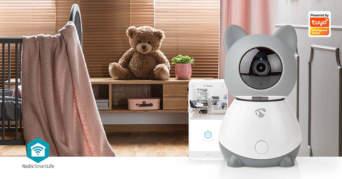 Nedis® SmartLife™ chytrá IP kamera z řady Nedis® Smart Home s Full HD rozlišením je snadno ovladatelná dětská chůvička/IP kamera pro vnitřní použití, kterou lze jednoduše připojit k Wi-Fi síti a sledovat např. Vaše miminko. Můžete zaznamenávat jakýkoli zvuk nebo pohyb. Nahrávky lze pořizovat nepřetržitě, podle rozvrhu nebo lze nahrávání spouštět pohybem či zvukem. Kameru můžete pomocí bezplatné aplikace v telefonu horizontálně i vertikálně otáčet nebo ji nechat automaticky sledovat jakýkoli pohyb, aby vám nic neuniklo. Díky přívětivému designu se toto zařízení stane vítaným doplňkem a infračervená LED dioda zajistí noční vidění až do vzdálenosti 10 metrů bez nutnosti použití viditelného světla. Integrovaný snímač teploty a vlhkosti v místnosti zobrazuje oba údaje v aplikaci. Sledujte, poslouchejte a mluvte s kýmkoli, kdo je před kamerou, nebo sledujte záznamy uložené na kartě microSD (není součástí balení) nebo v cloudu (na základě předplatného). Pokud je detekce pohybu vypnutá, můžete zasílat upozornění pouhým stisknutím tlačítka na přední straně kamery.