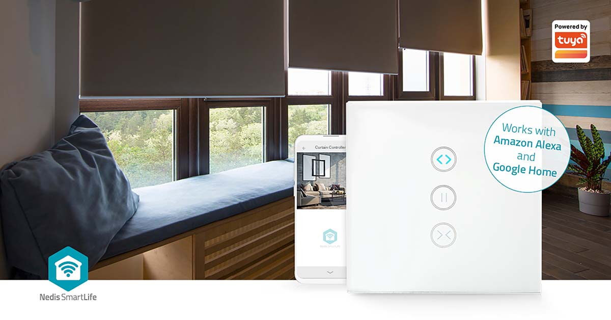 Ovládání motorových pohonů žaluzií, rolet, záclon a markýz je nyní mnohem chytřejší. Tento Nedis® SmartLife™ chytrý nástěnný spínač umožňuje dálkově a automaticky ovládat elektrické pohony z Vašeho smartphonu, tabletu nebo jakýchkoliv zařízení s funkcí hlasového ovládání domova, např. Amazon Alexa nebo Google Home. Tento chytrý ovladač elektrických pohonů lze rovněž nastavit tak, aby pracoval při zapnutí nebo vypnutí jiných produktů Nedis® SmartLife, záclony či žaluzie se tak mohou zatáhnout například při zapnutí světla.
