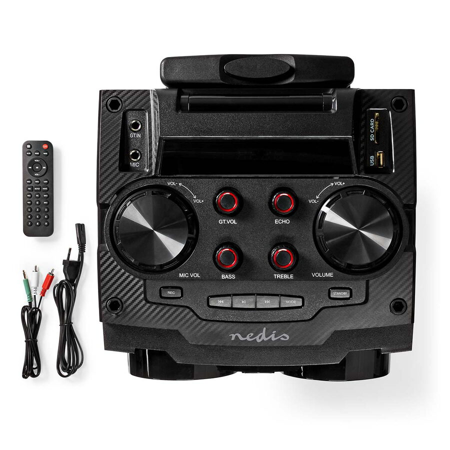 Reproduktor má dřevěný box a je vybaven 8" subwooferem a 2x 3" výškovým reproduktorem, které poskytují optimální zvukový zážitek. Disponuje připojením Bluetooth® pro spárování se smartphonem nebo můžete použít kartu SD nebo USB flash disk k přehrávání své oblíbené hudby. Vedle připojení mikrofonu pro funkci karaoke lze také připojit kytaru. Bezdrátový reproduktor má vestavěnou dobíjecí baterii 4000 mAh, takže si můžete vychutnat až 6,5 hodiny hudby.
