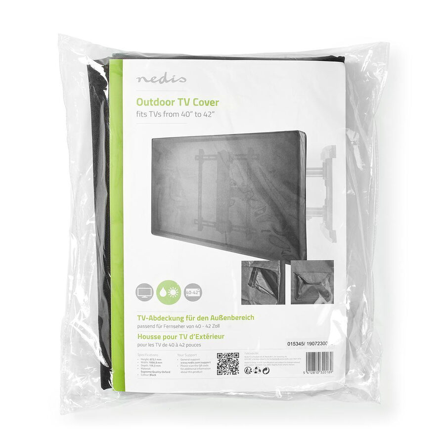 Pomocí tohoto Nedis® venkovního krytu na televizní obrazovku ochráníte svůj televizor před deštěm, vlhkem, větrem, slunečním světlem, prachem a ptačím trusem. Televizní kryt poskytuje 360° ochranu a je vyroben z vysoce kvalitní látky Oxford, která odolá přírodním živlům řadu let.