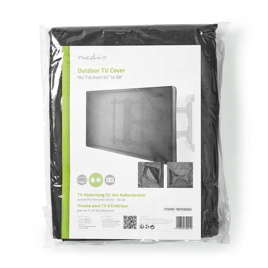 Pomocí tohoto Nedis® venkovního krytu na televizní obrazovku ochráníte svůj televizor před deštěm, vlhkem, větrem, slunečním světlem, prachem a ptačím trusem. Televizní kryt poskytuje 360° ochranu a je vyroben z vysoce kvalitní látky Oxford, která odolá přírodním živlům řadu let.