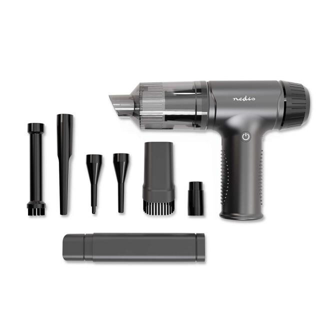 Multifunkční bezdrátový vysavač a foukač Nedis se 7 vyměnitelnými hubicemi. Patří sem dlouhá sací hubice, kartáčová sací hubice, dvě hubice na vyfukování prachu, dlouhá plochá hubice, hubice na nafukování a hubice na stlačený vzduch. Tyto možnosti zajišťují, že se snadno vypořádáte s jakýmkoli úklidem.
