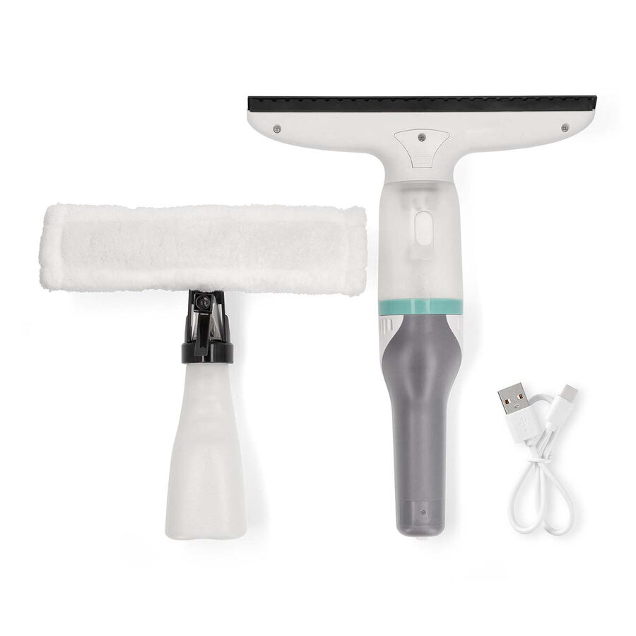 Vysavač je dodáván s velkou 360 ml lahví s rozprašovačem a utěrkou z mikrovlákna, vším, co potřebujete k dosažení dokonale čistých oken.