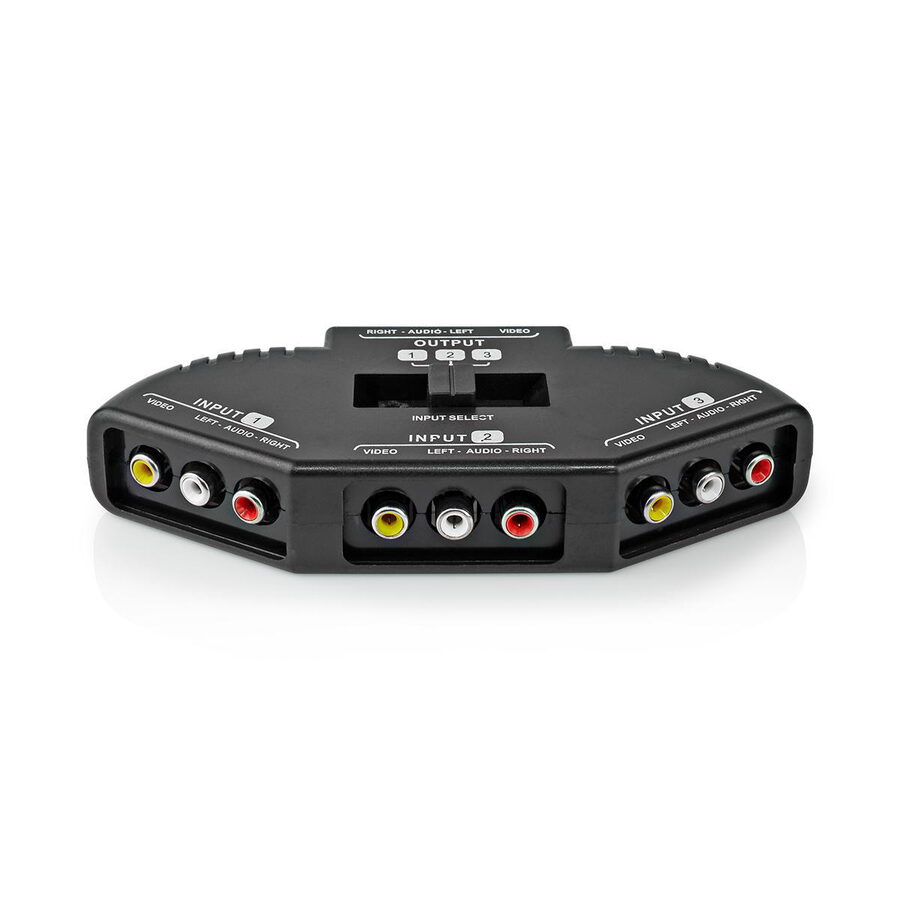 Připojte herní konzole, videorekordéry nebo jiné zdroje audio/video signálu k jedinému televizoru. Tento kompaktní 3-cestný AV přepínač Nedis® Vám umožňuje přepínat až mezi třemi připojenými zařízeními.