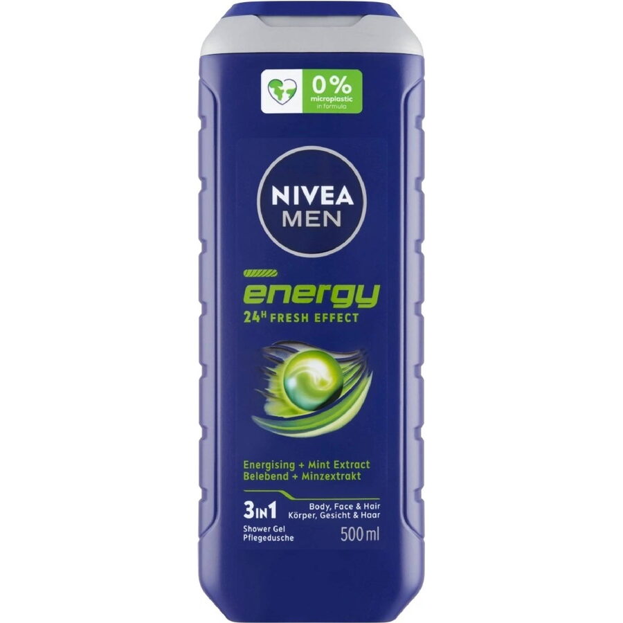 Vychutnejte si dokonalé osvěžení díky výtažku z máty a probuďte k životu svou pokožku i po opravdu vyčerpávajícím dni. Dopřejte si příval energie po každém sprchování a zapomeňte na pocity únavy a ospalosti. Vsaďte na propracované složení s příjemnou povzbuzující vůní. Dopřejte si účinnou péči pro muže – na tělo, tvář i vlasy: NIVEA Sprchový gel pro muže Energy.