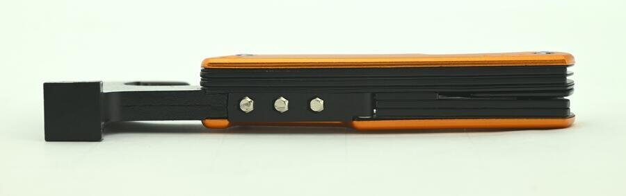 Nástroje se vyrábějí z kvalitní nerezové oceli s černěným povrchem. Hliníkové střenky mají žluto-zlatou barvu. Velkou výhodou je navíc praktické textilní pouzdro, které si můžete v případě potřeby zavěsit za opasek.