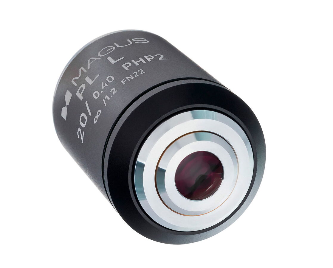 Model 20HP má 20x zvětšení a nejlépe funguje s okuláry se zvětšením 10x až 20x. Společně tvoří užitečné zvětšení mikroskopu 200x až 400x. Nemá smysl do optické soustavy zařazovat okuláry s jiným zvětšením, protože buď nebudou poskytovat dostatečně informativní obraz, nebo budou nadměrné a nepřinesou vám žádný další užitek. Objektiv rozlišuje prvky preparátu na minimální vzdálenost 0,69 µm.