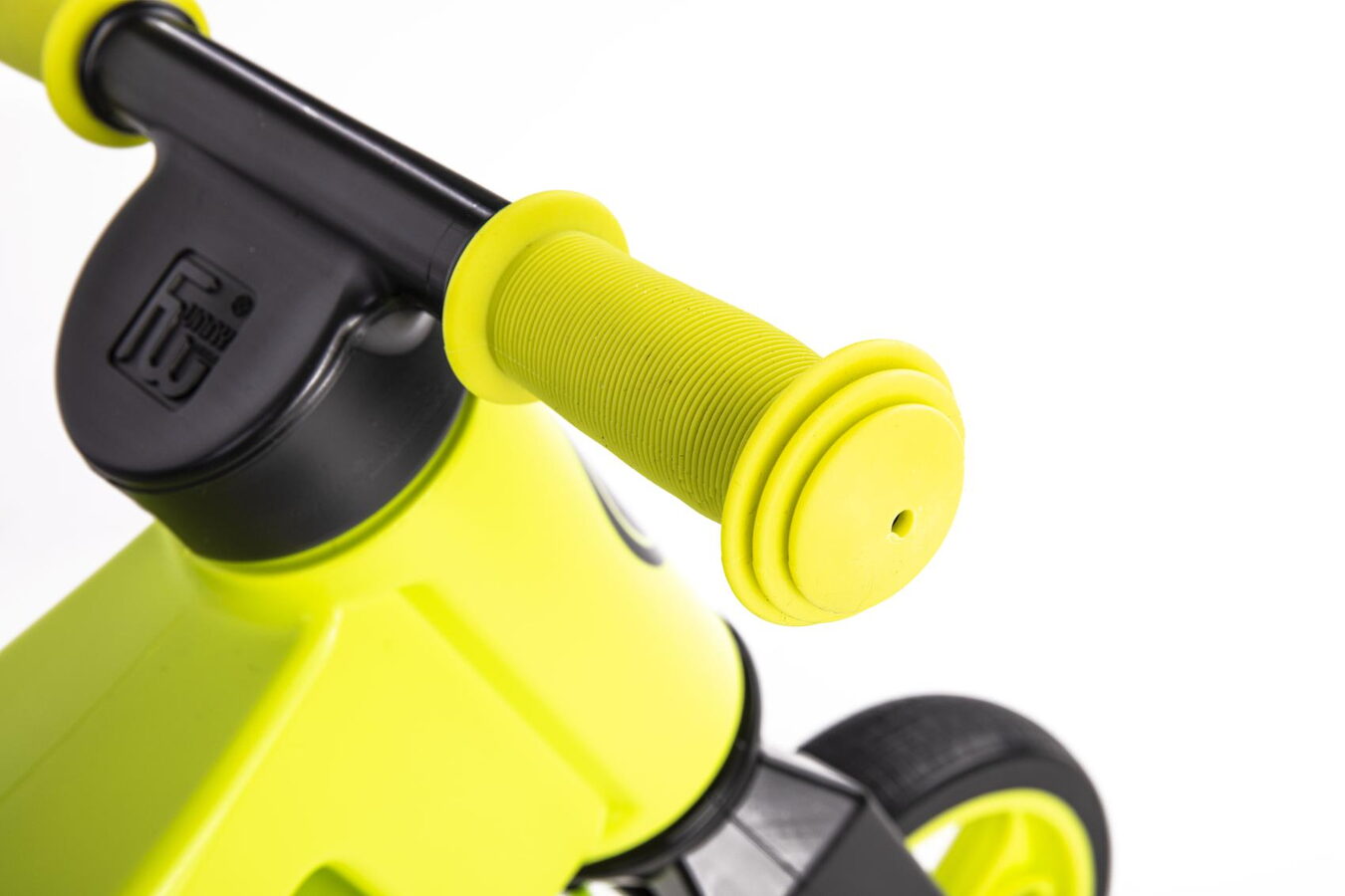 Aretace řídítek – vidlice má omezený rozsah otáčení, řídítka se nemohou přetočit. Aretace zabraňuje poranění bříška dítěte. Řídítka jsou opatřena barevnými, superměkkými rukojeťmi, které jsou na koncích rozšířené a chrání tak ruce dětí před poraněním.