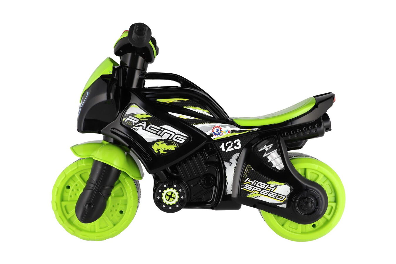 Stylové dětské odrážedlo ve tvaru závodní motorky nadchne každého malého jezdce. Moderní zeleno-černé provedení s atraktivními sportovními samolepkami dodává motorce realistický vzhled skutečného závodního stroje.