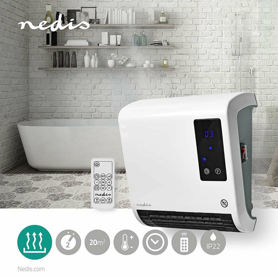 Výkonné elektrické koupelnové topidlo Nedis HTBA20WT s topným tělesem, se hodí pro vyhřátí koupelen případně dalších místností do 20m². Je v koupelně málo místa? Nevadí. Topidlo má konstrukci, kterou namontujete na jakoukoliv stěnu a tím ušetříte místo na podlaze. Během dne bude topidlo doma hřát podle nastavených teplot v danou nastavenou dobu. Otevřeli jste okna a zapomněli ho zavřít? Nevadí. Topidlo má detekci otevřeného okna. Když zaznamená náhlý pokles teploty automaticky se vypne.