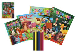 Stránky plné zábavy. Děti si procvičují jemnou motoriku a představivost s omalovánkami a ostatními aktivitami, které soubor sešitů nabízí. Sada obsahuje 4 ks sešitů a pastelky základních barev.