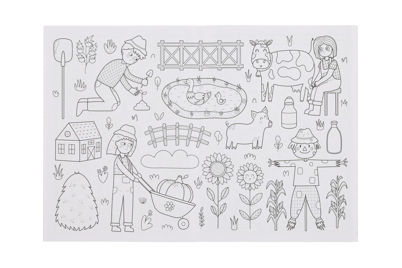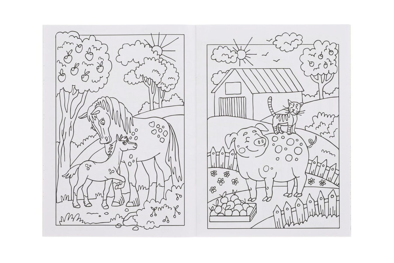 Roztomilé omalovánky Zvířata na farmě přenesou děti na venkov plný veselých zvířátek. Uvnitř najdou obrázky kraviček, prasátek, slepiček, koníků, ovcí a dalších obyvatel farmy. Každá stránka nabízí jednoduchou, přehlednou a hravou ilustraci ideální k vybarvení.