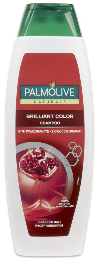 Šampon Palmolive Brilliant Color obsahuje UV-filtr a výtažky 100% přírodního původu z granátového jablka, perel a mandlového oleje, pečující složení vlasy chrání a vyživuje a přitom zachovává jejich zářivou barvu.