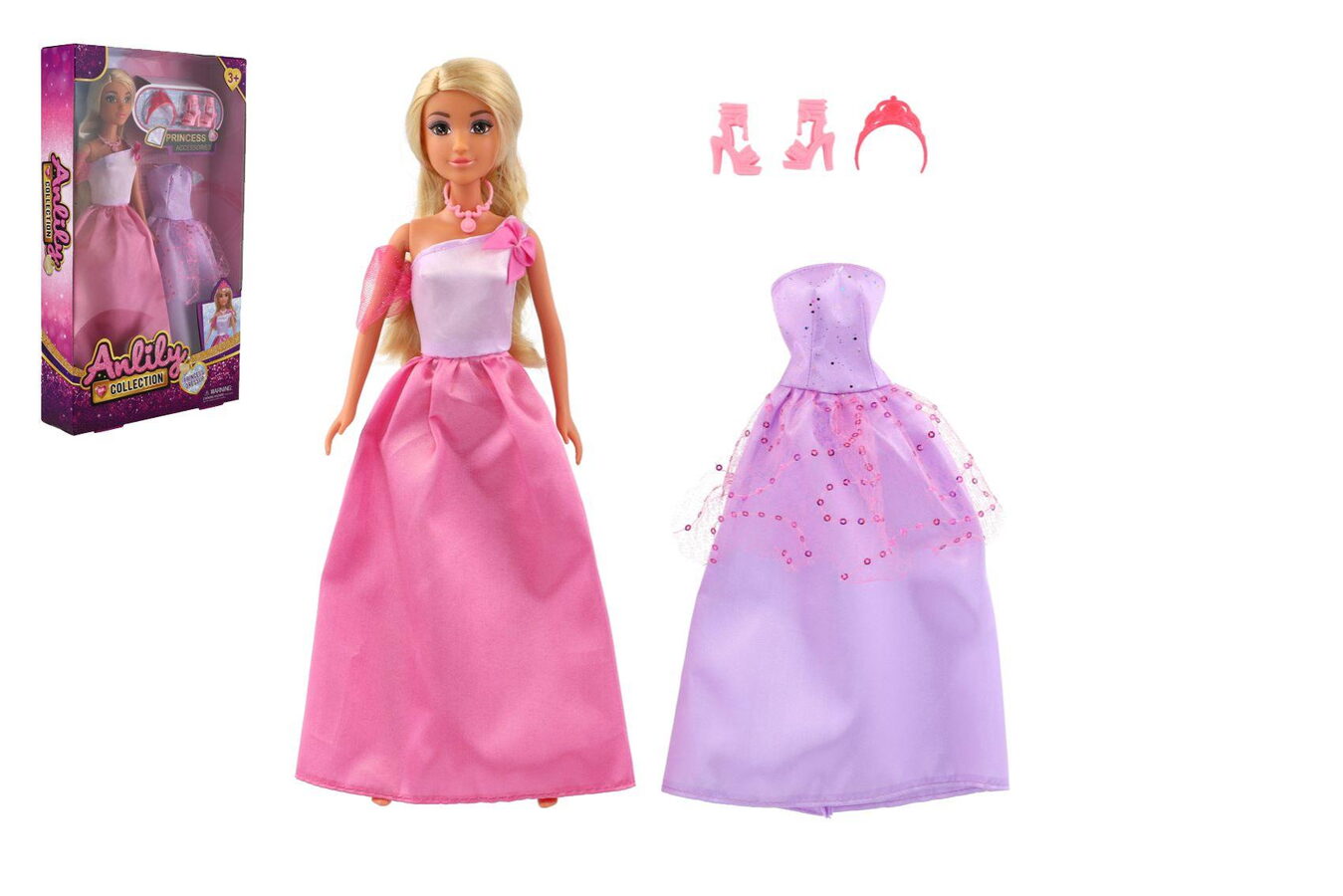 Panenka Anlily v roli půvabné princezny okouzlí každou malou milovnici pohádek. V balení najdete nejen samotnou panenku ve slavnostních šatech, ale také druhý šaty navíc, čelenku a jedny střevíce. Děti si tak mohou panenku převléknout a vtáhnout ji do světa vlastních příběhů plných kouzel a fantazie.
