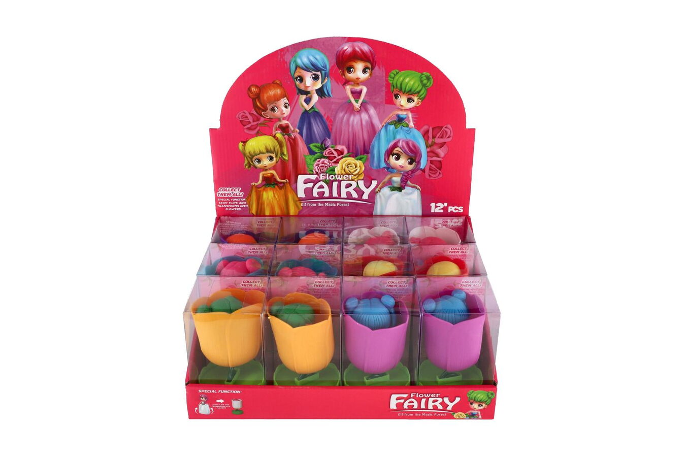 Objevte kouzelný svět květinových víl! Tyto roztomilé panenky s barevnými vlásky a krásnými šaty skrývají překvapení – jejich sukně se otočí a během chvilky se promění ve květinu! Díky této speciální funkci si děti užijí nejen hru na víly, ale i kreativní přeměnu.