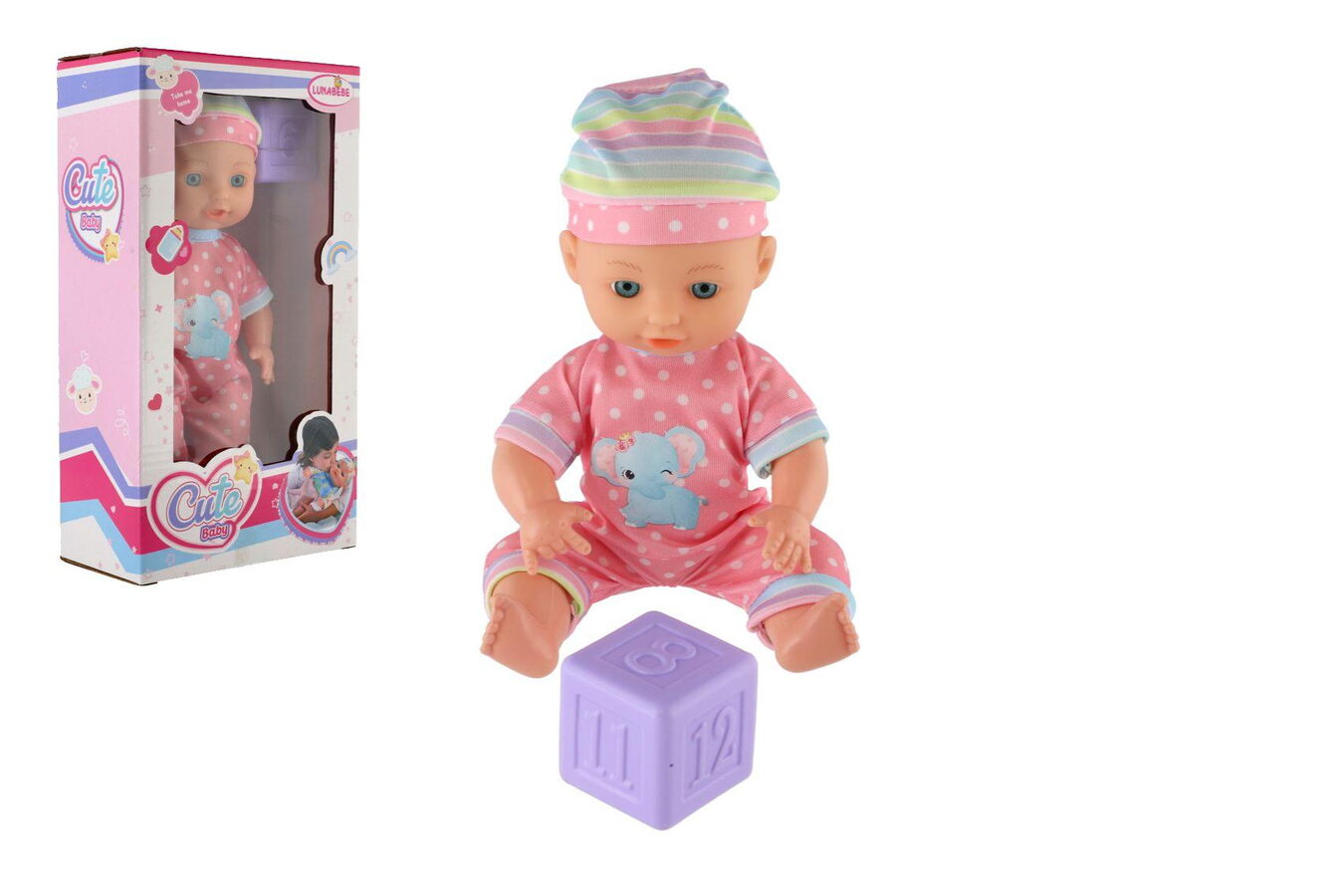 Panenka miminko 25cm pevné tělo plast s kostkou v krabici 15x27x8cm