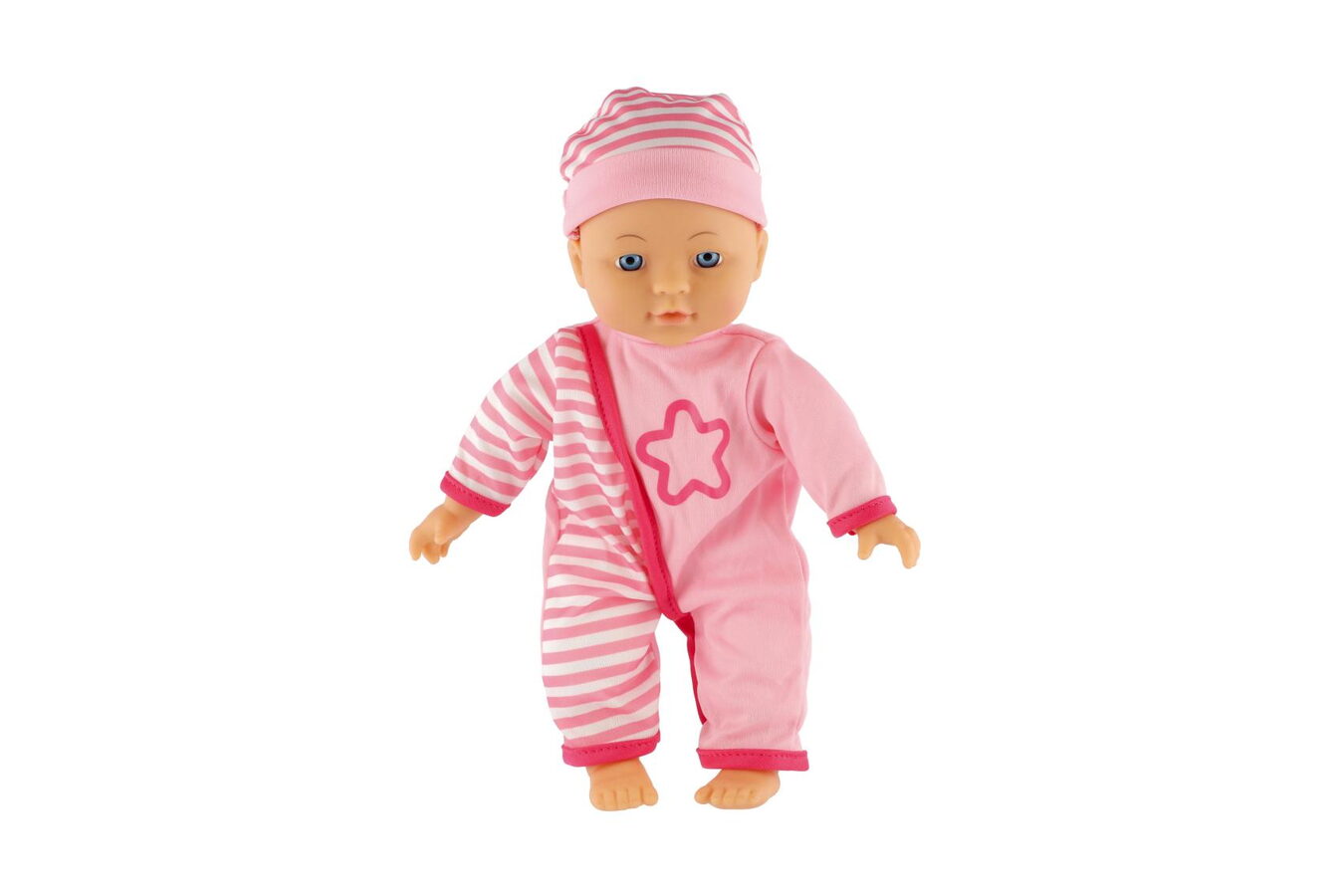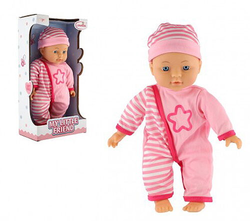 Roztomilá panenka s měkým tělíčkem v krásném růžovém oblečku s čepičkou. Toto miminko udělá jistě radost každé holčičce a stane se tak její nepostradatelnou součástí.
