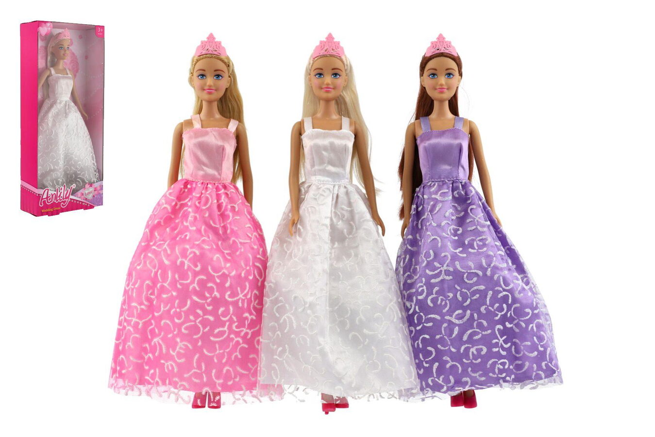 Teddies Panenka nevěsta Anlily v šatech kloubová plast 28cm asst 3 barvy v krabici 14x32x5cm