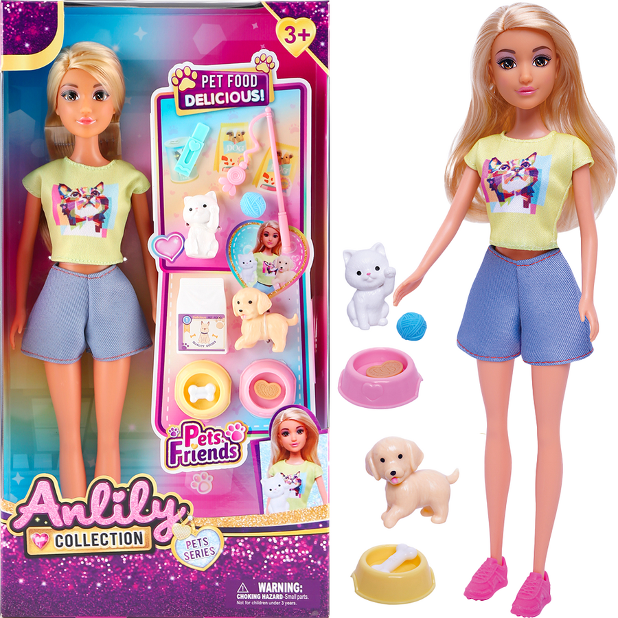 Panenka s kočkou, pejskem a dvěma miskami