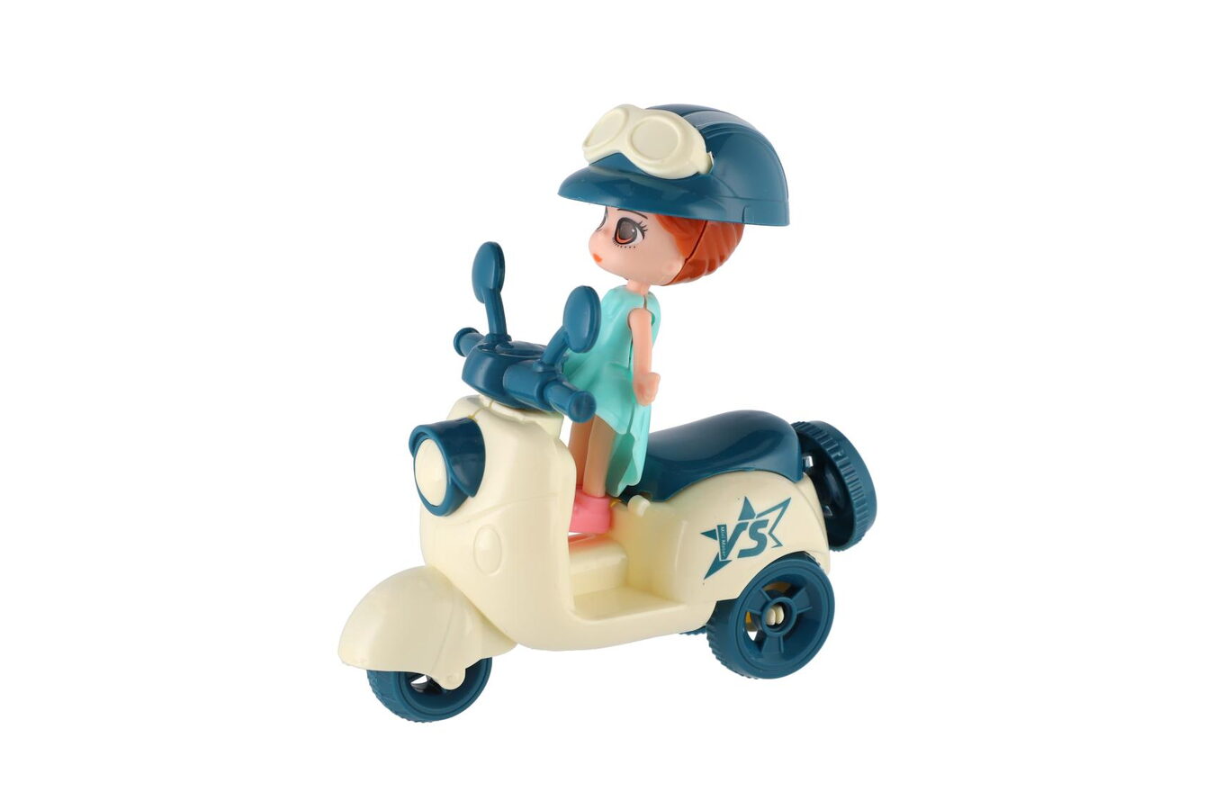 Vydej se s panenkou na výlet a užijte si spolu krásný slunný den plný zábavy a dobrodružství. Panenka na skútru v letním oblečení. Motorka/skútr je velikosti cca 10 cm. Součástí sady je také helma pro panenku pro bezpečnou jízdu.