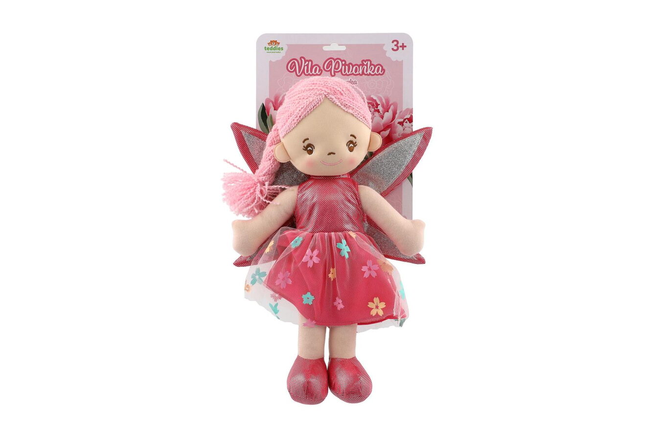 Panenka víla Pivoňka hadrová/látková 40 cm na kartě