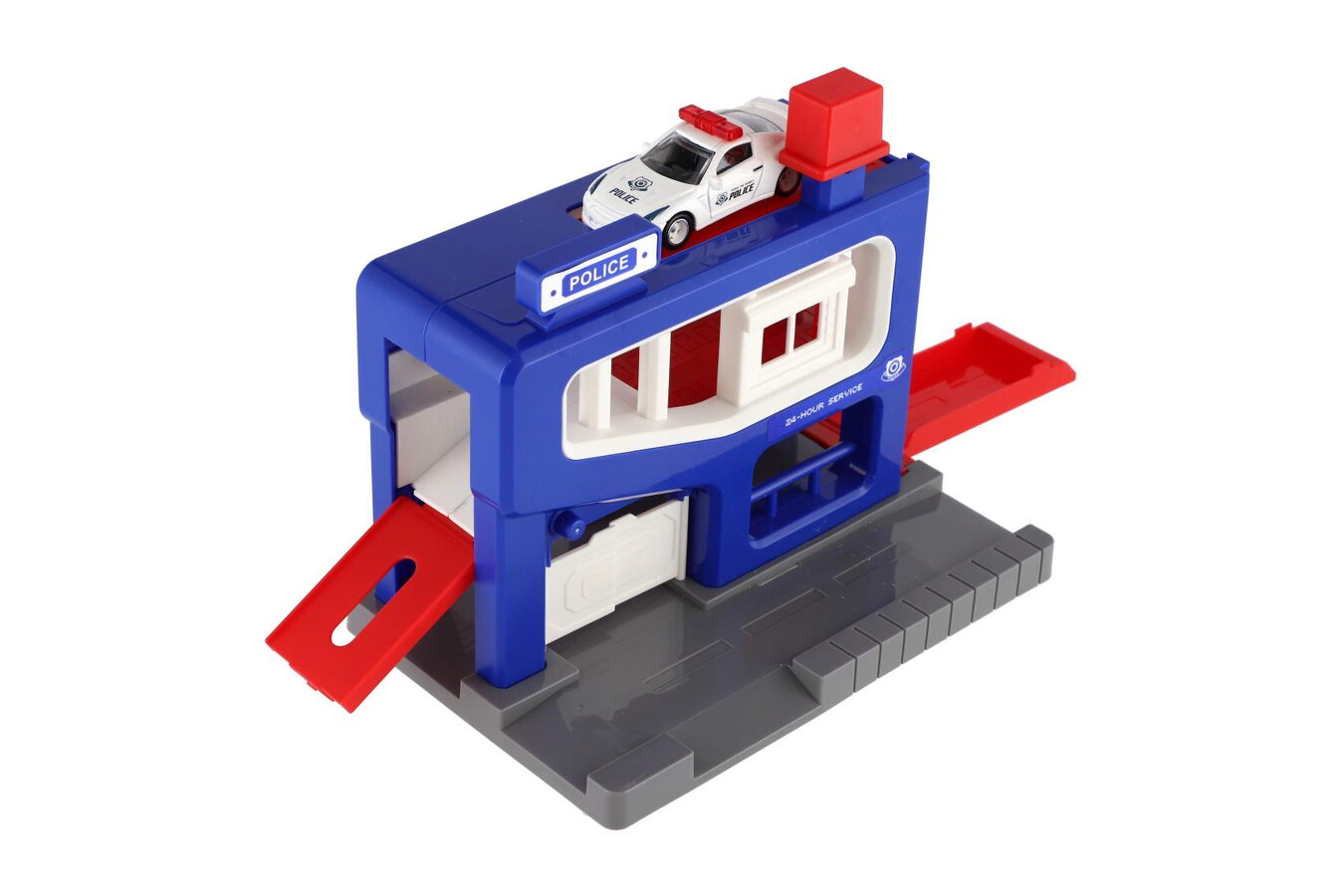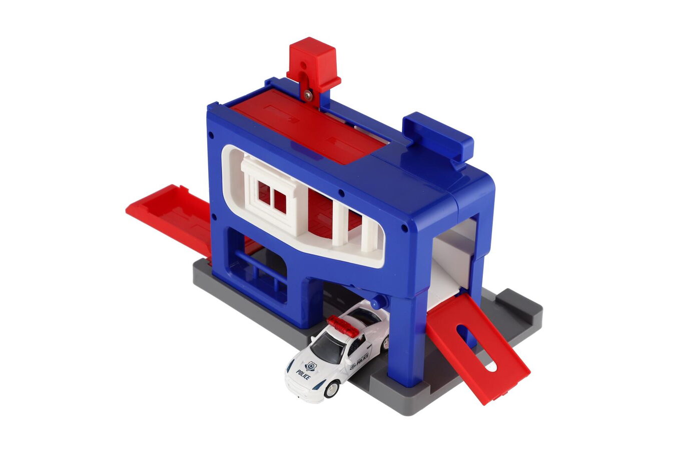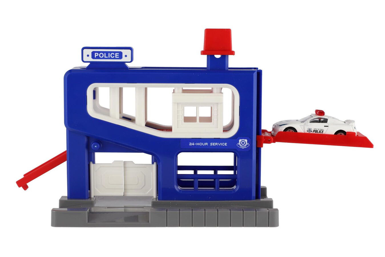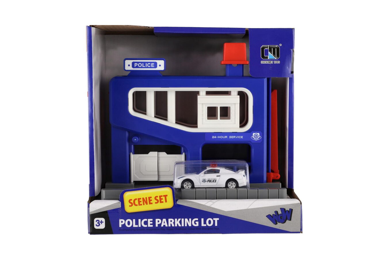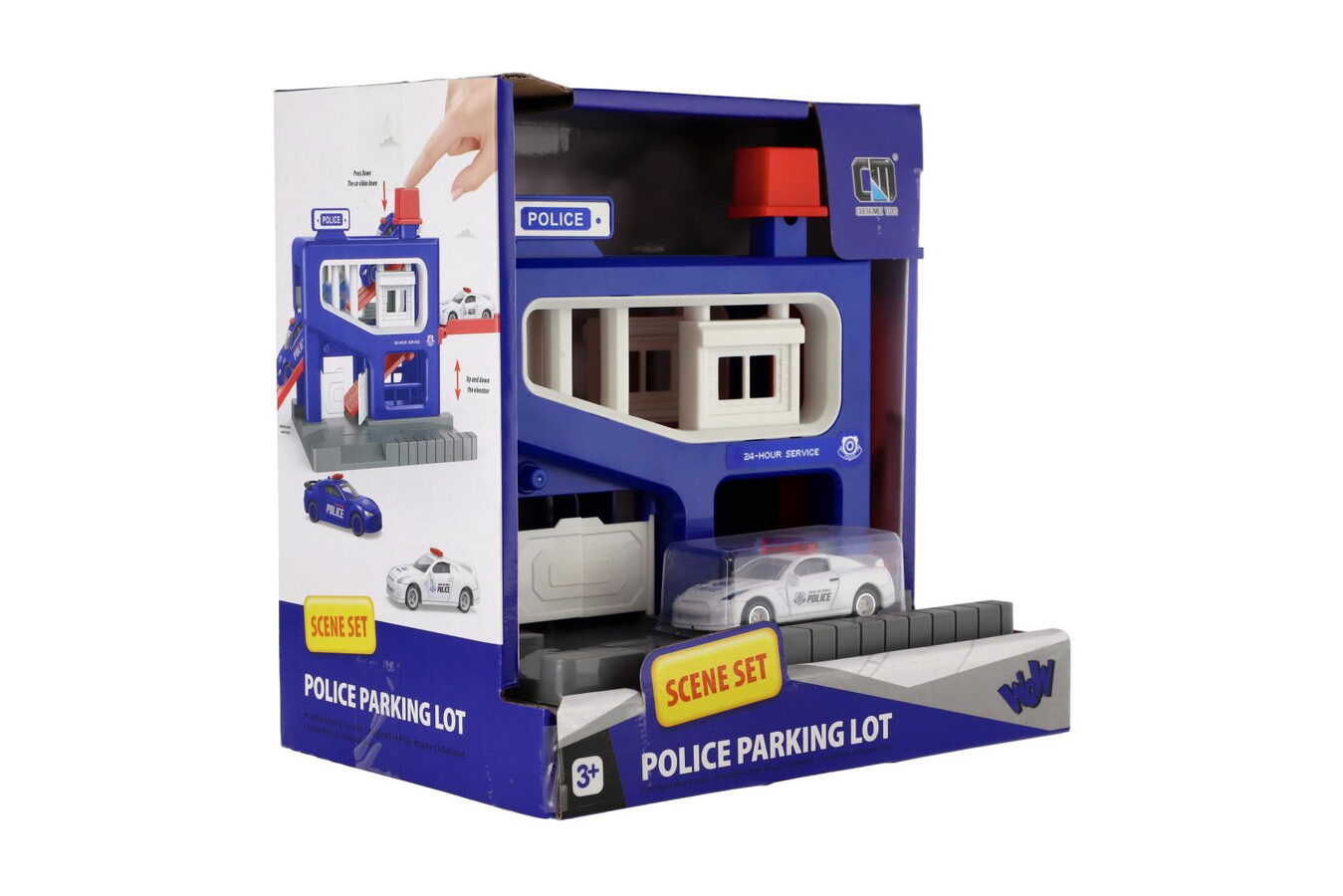 Parkovací garáž + auto policie plast v krabici 20x20x14cm
