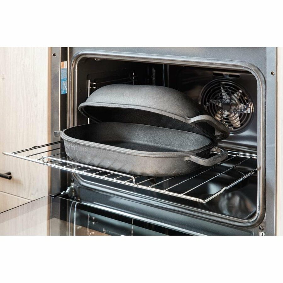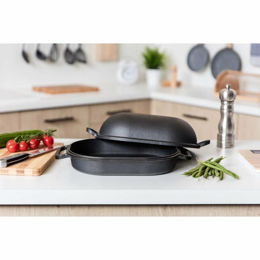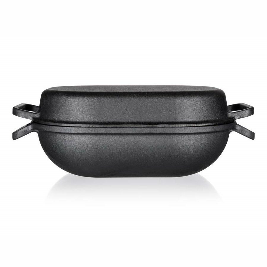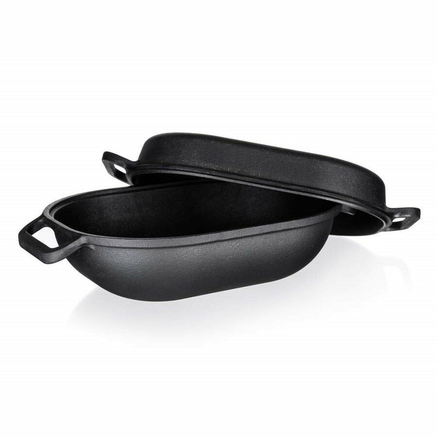 Litinový oválný pekáč oválný s víkem o objemu 3 + 4 l.