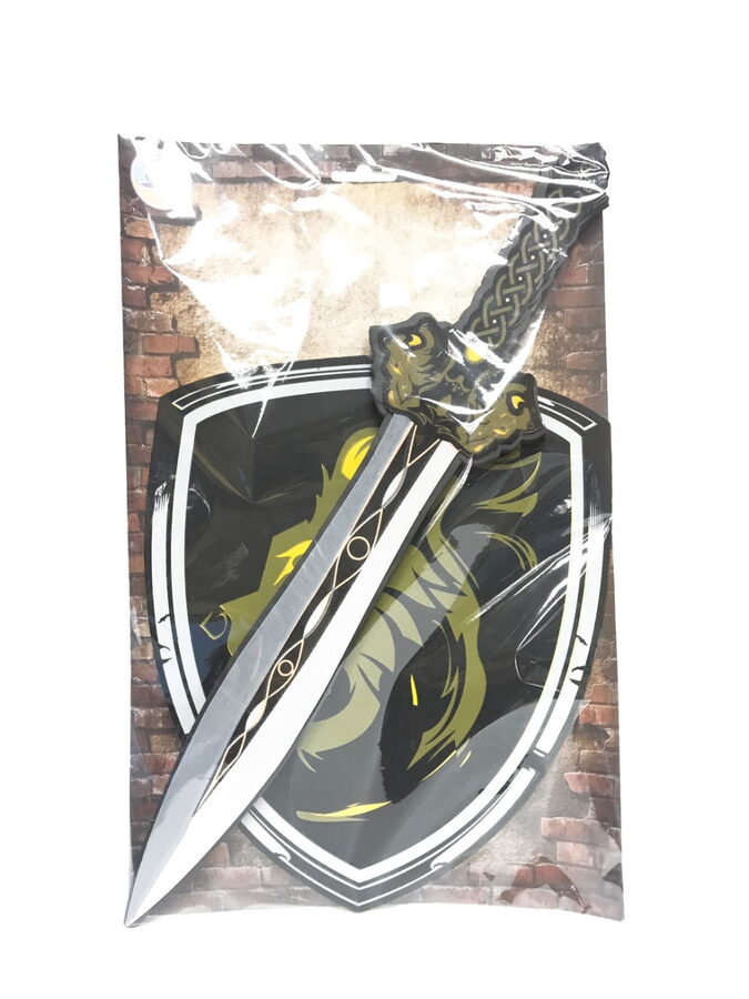 „Dětský pěnový meč a štít s motivem lva pro malého samuraje. Souprava je vyrobena z pěny a je velmi bezpečná. Vhodné jako doplněk ke karnevalovému kostýmu.“