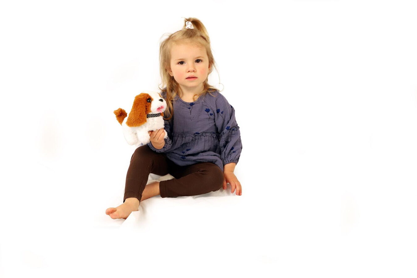 Roztomilý pejsek chodí dopředu i dozadu a vydává reálné zvuky štěkání. Pejsek je balen v krabičce, která je zároveň jeho boudou. Baterie 2x AA nejsou součástí výrobku.