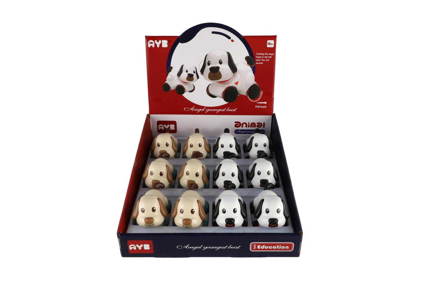 Pes/Pejsek jezdící plast 11x9cm na zpětné natažení 2 barvy 12ks v boxu