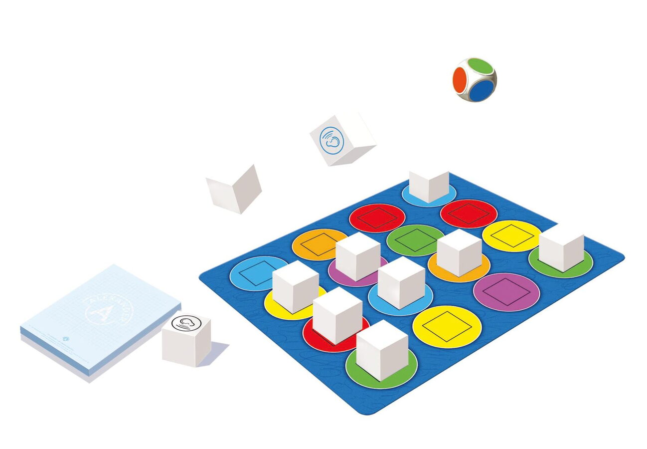 Děti hledají 2 kostky se stejným zvukem. Hra obsahuje i těžší variantu od 8 let se speciální barevnou hrací deskou. Obsahuje 16 zvukových krychliček, barevnou kostku, hrací desku, návod a poznámkový bloček.