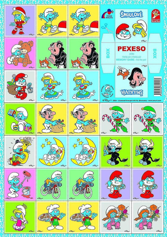 Pexeso Šmoulové papírové společenská hra 32 obrázkových dvojic 21,5x30cm