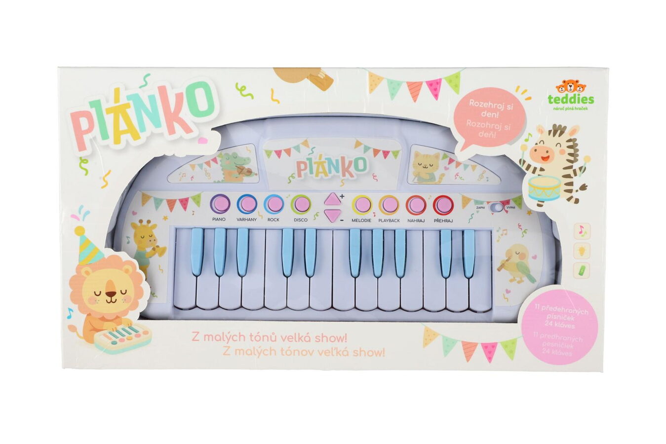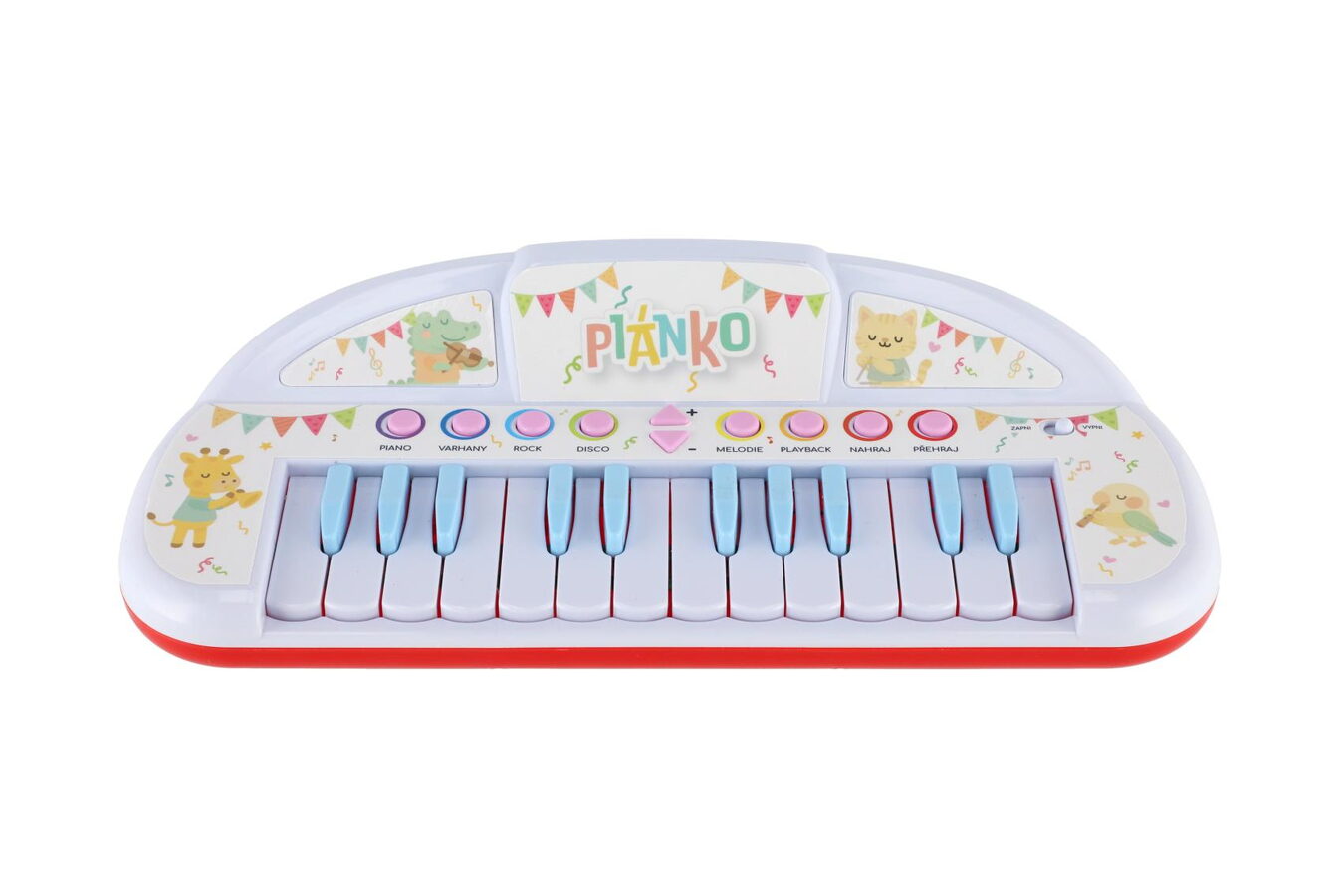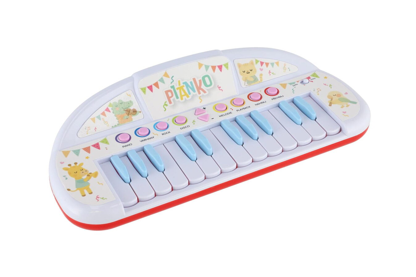 Díky lehké plastové konstrukci je piánko snadno přenosné a bezpečné pro malé dětské ruce. Obsahuje klávesy a tlačítka s různými hudebními režimy a zvuky, které děti zábavnou formou seznamují se světem hudby.