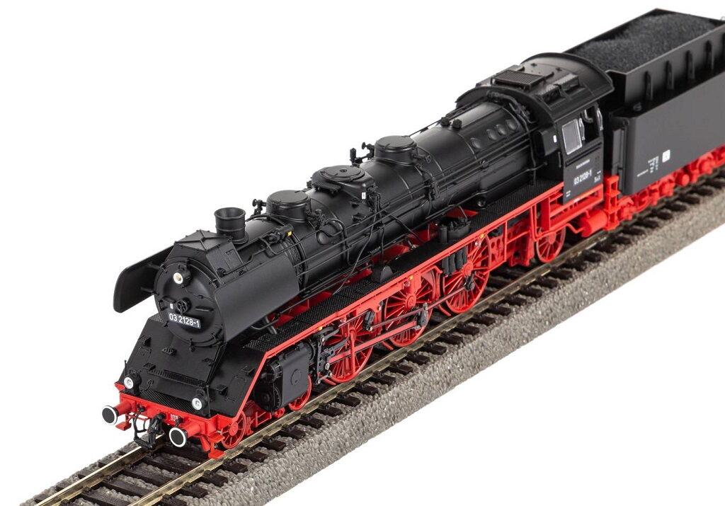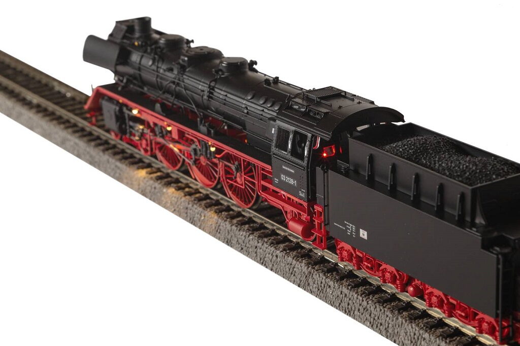 Novinka pro rok 2025: Od roku 1969 přišla řada na parní lokomotivy řady 03, které byly přestavěny pro další roky provozu. Hlavní důraz byl kladen na generální opravu kotle, včetně smíšeného předehřívače, přepracovaného vertikálního kotle a popelníku. Lokomotivy se také dočkaly reorganizace čerpadel, charakteristického systému smíšeného předehřívače na kouřové komoře a nové střechy na kabině. Rekonstruované lokomotivy sloužily v dálkové dopravě po dobu dobrého desetiletí. Specifikace: napájení DCanalogové ovládání délka s nárazníky 275 mmšachta NEM minimální rádius 422 mm2 bandážovaná koladigitální rozhraní NEM 658 PluX22zvuk – ne, dodatečná montáž zvukového dekodéru PIKO, číslo produktu 56620 osvětlení - bílá/červená svítí v závislosti na směru jízdydodatečná montáž funkce páry, číslo produktu 56163digitálně přepínatelné osvětlení kabiny a osvětlení topeniště (s dekodérem PluX22) Hlavní vlastnosti: realistické barevné provedenídetailní zpracováníatraktivní design