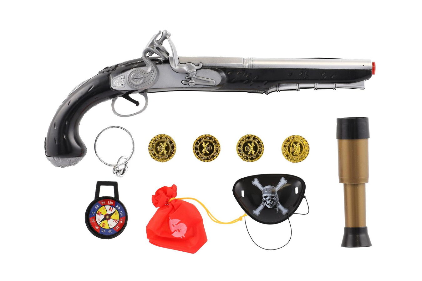 Pirátská sada pro všechny malé piráty! Set obsahuje pistoli, dalekohled a další doplňky.