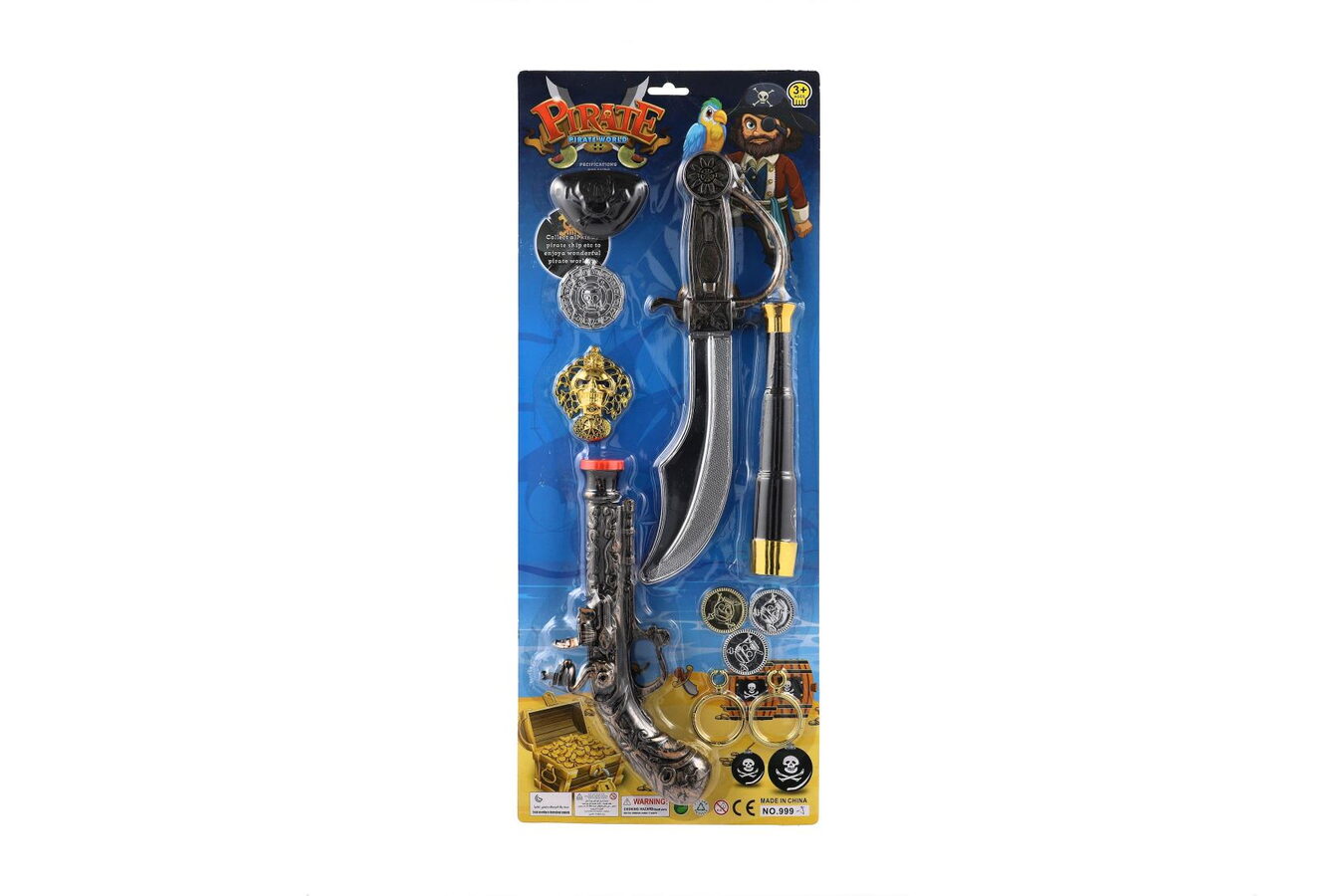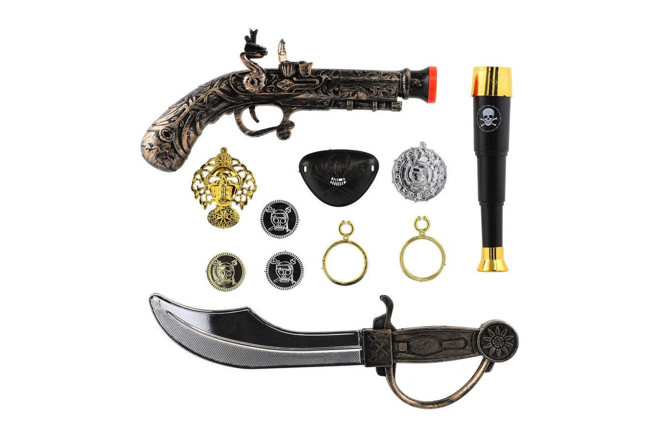 Staň se kapitánem pirátské lodi s touto plastovou pirátskou sadou, která obsahuje vše potřebné pro dobrodružství na moři. Balení na kartě je ideální jako dárek nebo doplněk ke kostýmu na karneval, narozeninovou oslavu či tematickou hru.