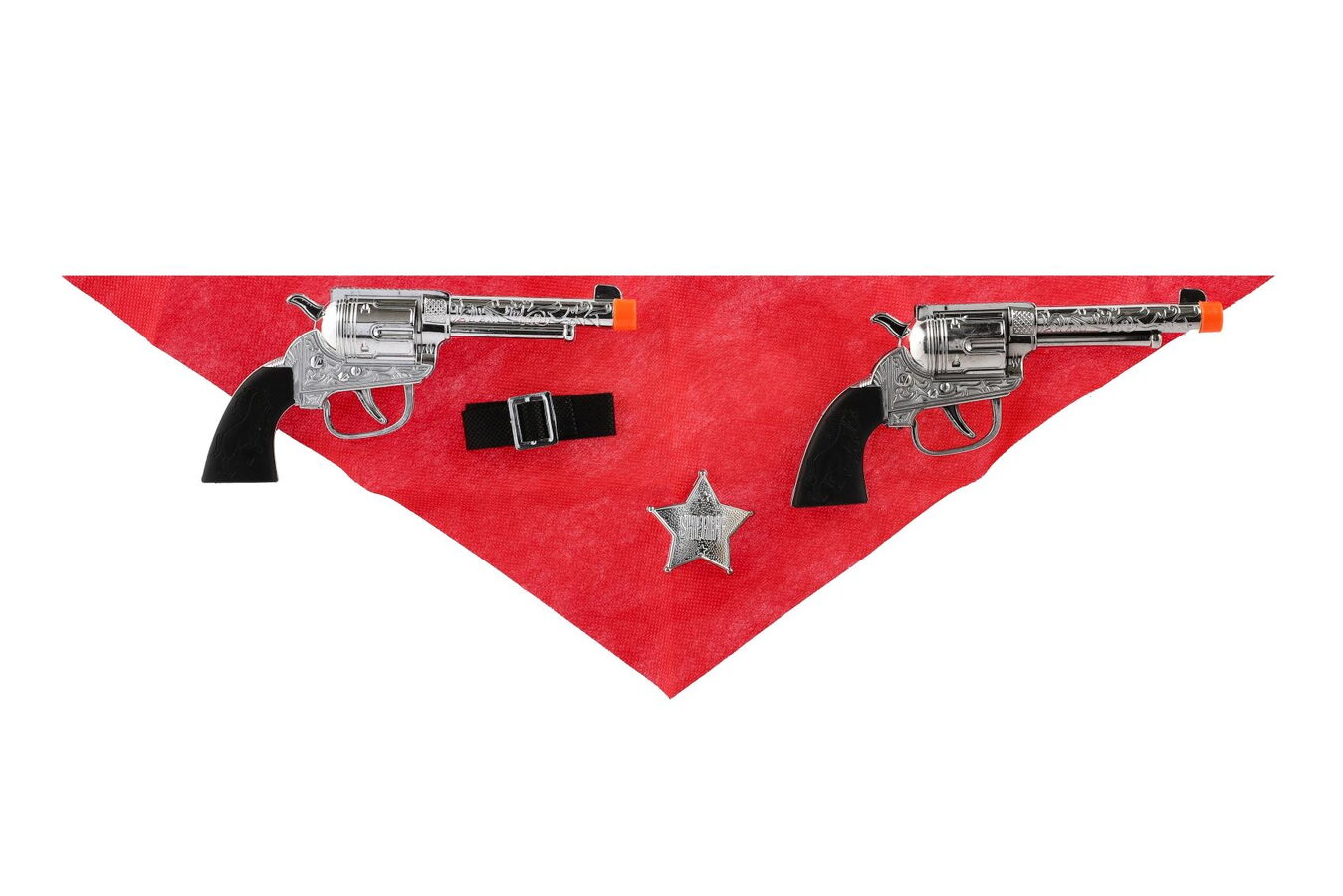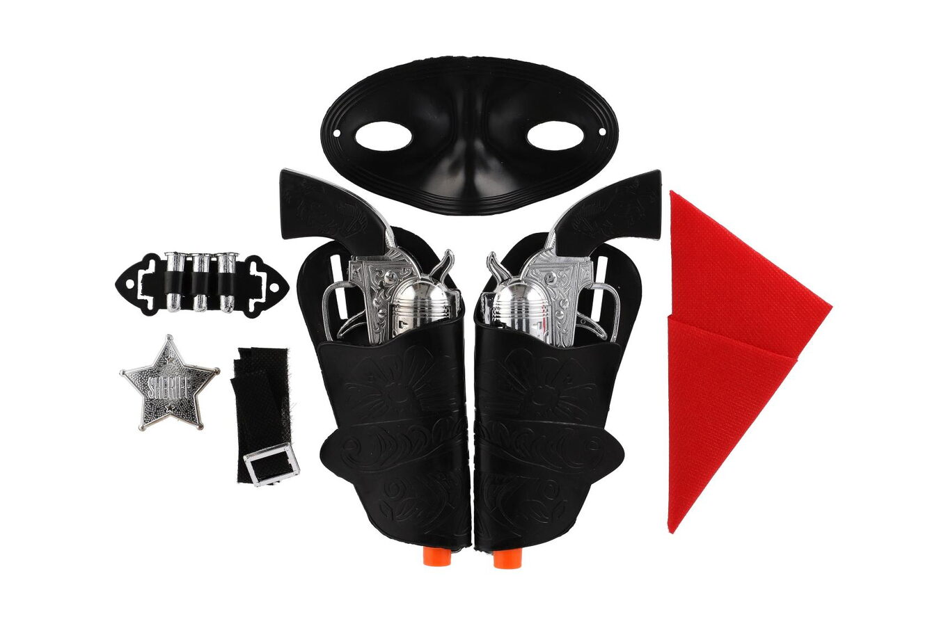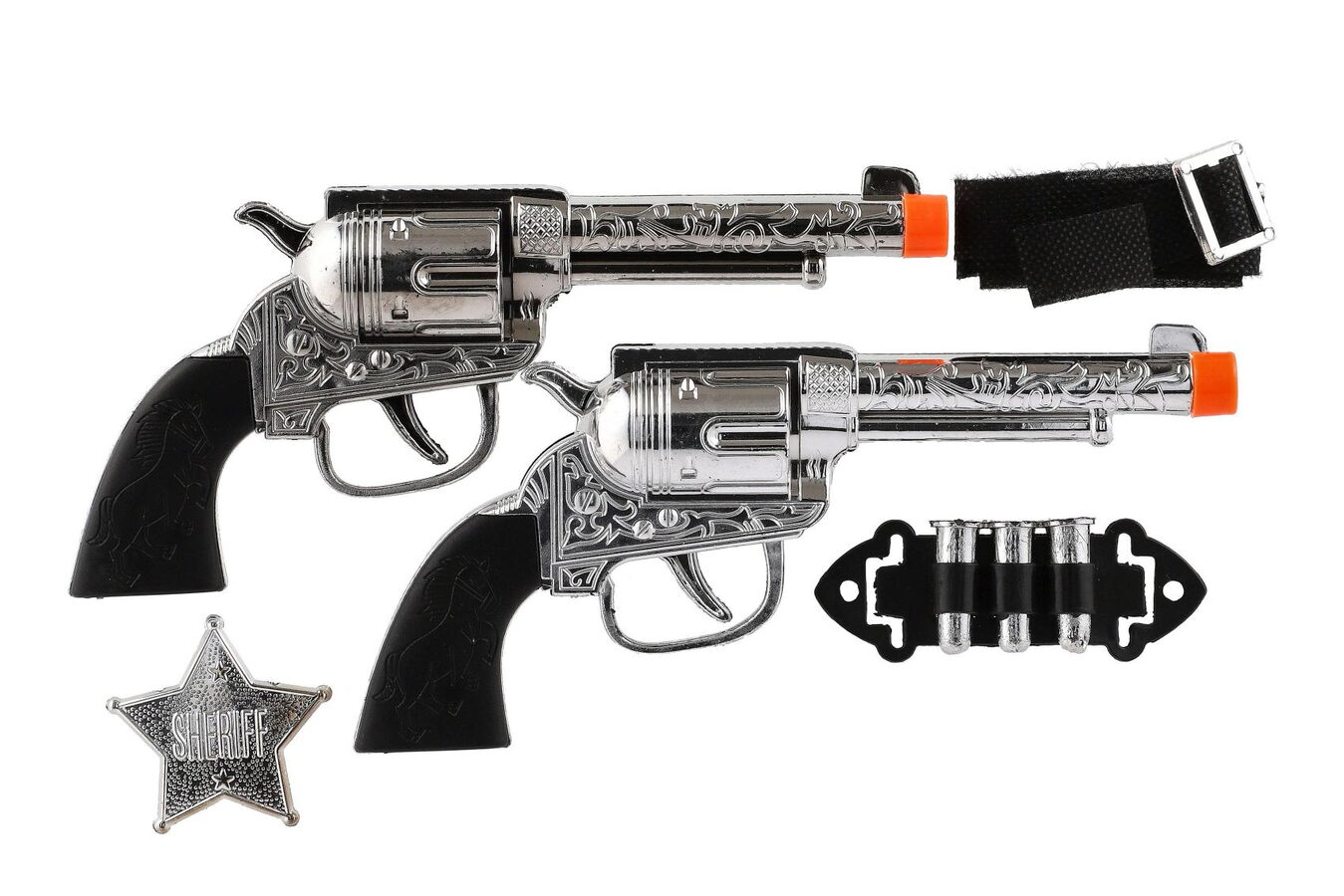 Život kovboje je snem spousty chlapců. S touto sadou 2ks pistolí se svému snu lehce přiblíží. Pistolky pro všechny malé pistolníky a kovboje. Sada obsahuje také odznak a spoustu dalších doplňků
