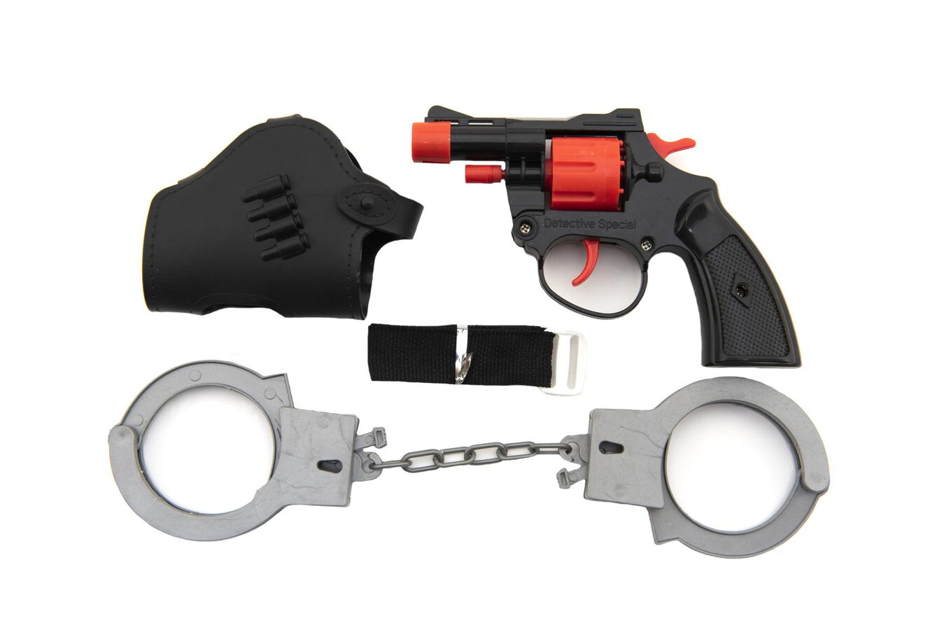 K oblíbeným dětským hrám patří hra na policisty. Kapsle 8 ran nejsou součástí balení. Sada obsahuje pistol velikosti 13 cm, pouzdro a pouta. Vhodné také jako doplněk ke karnevalovému kostýmu.