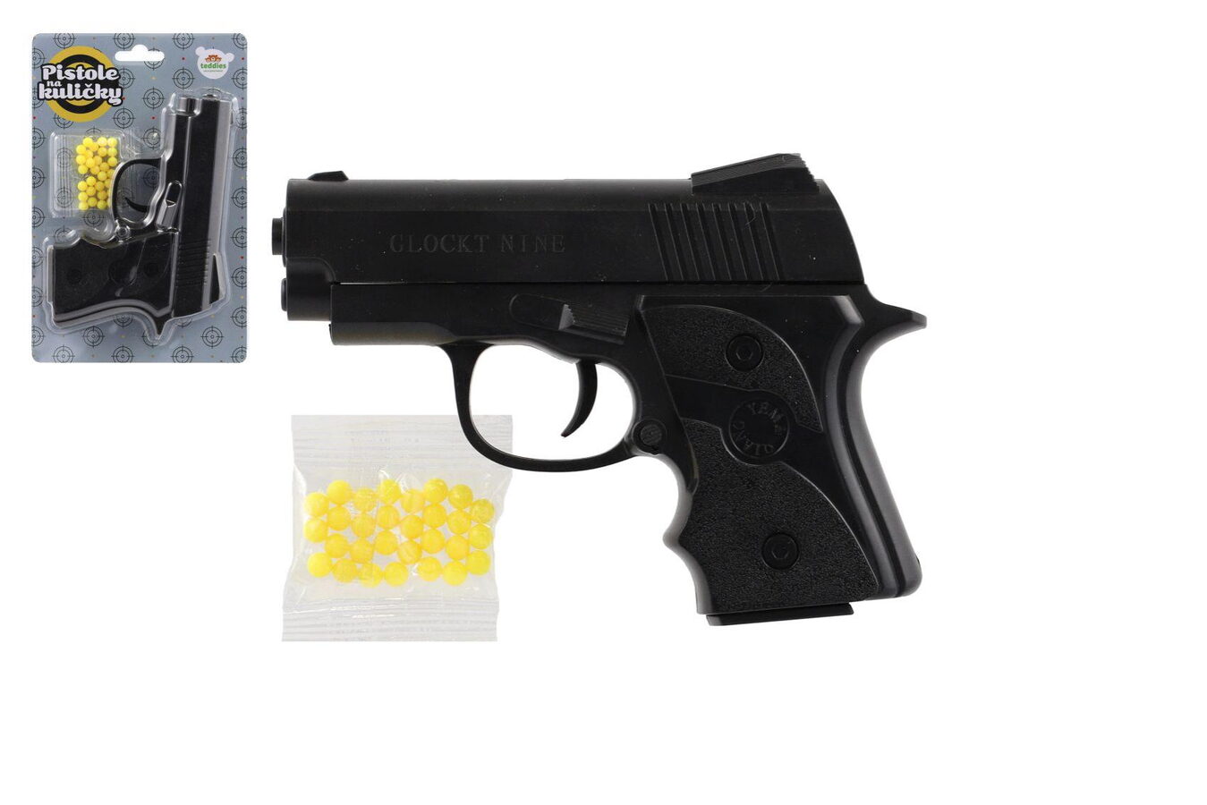 Pistole na kuličky plast 14cm + kuličky na kartě 13x20cm