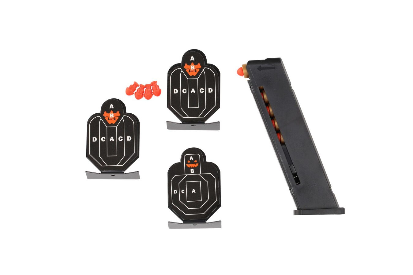 Nabij, zamiř a vystřel na terč! Podaří se ti trefit přímo střed? Můžeš si dát třeba turnaj o nejlepšího střelce se sourozencem! V balení najdeš 6 nábojů a tři terče! Zábava může začít!