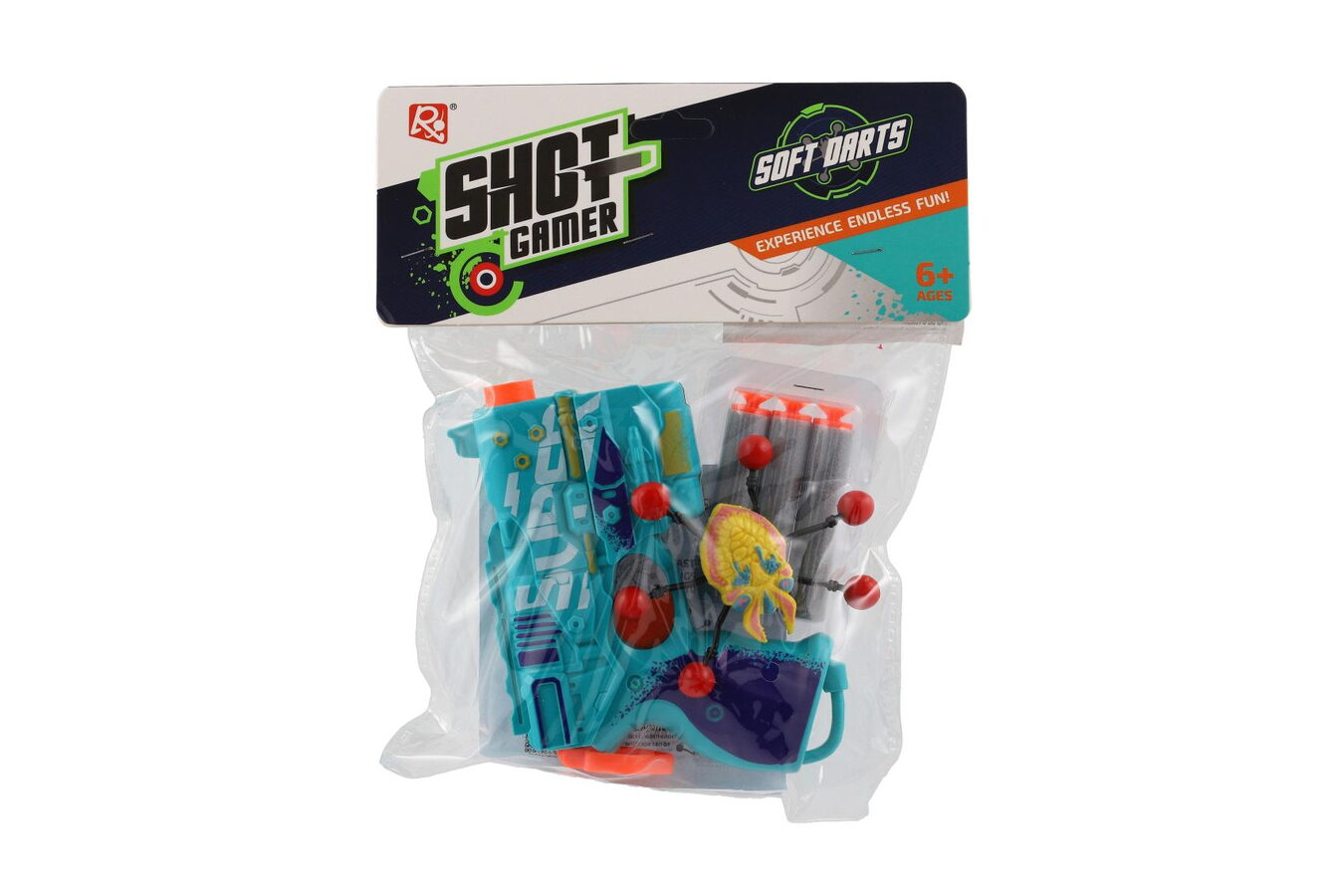 Pistole + pěnové náboje 3ks s přísavkami plast/pěna + mimozemšťan lezoucí po skle v sáčku 18x22x4cm