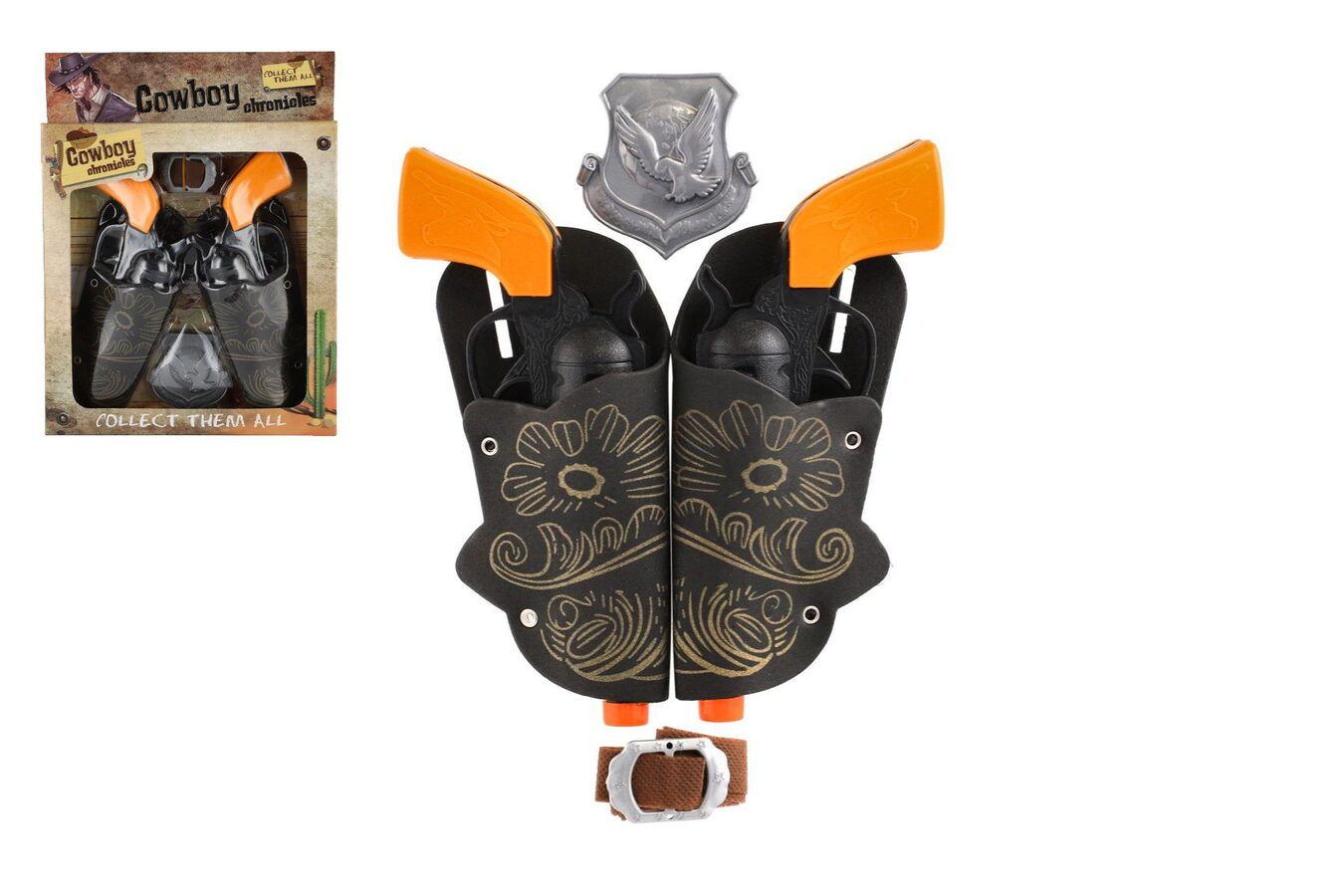 Teddies Pistole s pouzdrem 2ks kovbojská sada plast 16cm 2ks s doplňky v krabici